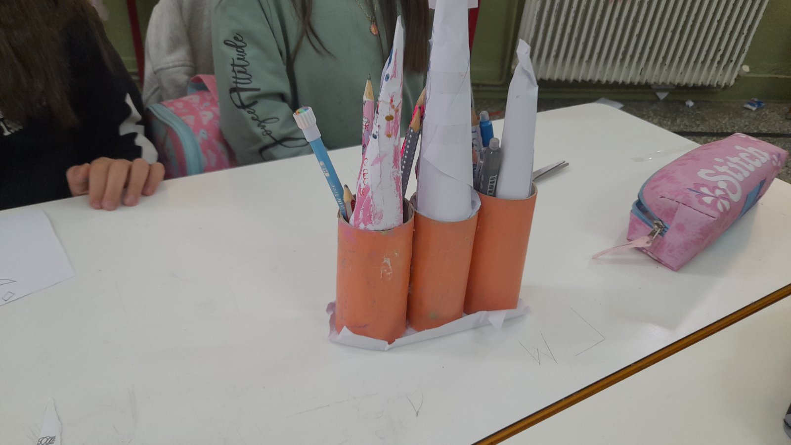 Στα πλαίσια των Εργαστηρίων Δεξιοτήτων, η Γ-Δ τάξη είχε την ευκαιρία να δημιουργήσει νέα αντικείμενα  από ανακυκλώσιμα υλικά. Μολυβοθήκες, παιχνίδια και πολλές άλλες κατασκευές από υλικά που βρισκόταν στον κάδο ανακύκλωσης του σχολείου. Στόχος μας η καλλιέργεια δεξιοτήτων που προάγουν την ευαισθητοποίηση γύρω από περιβαλλοντικά θέματα και ταυτόχρονα τη φαντασία τους.