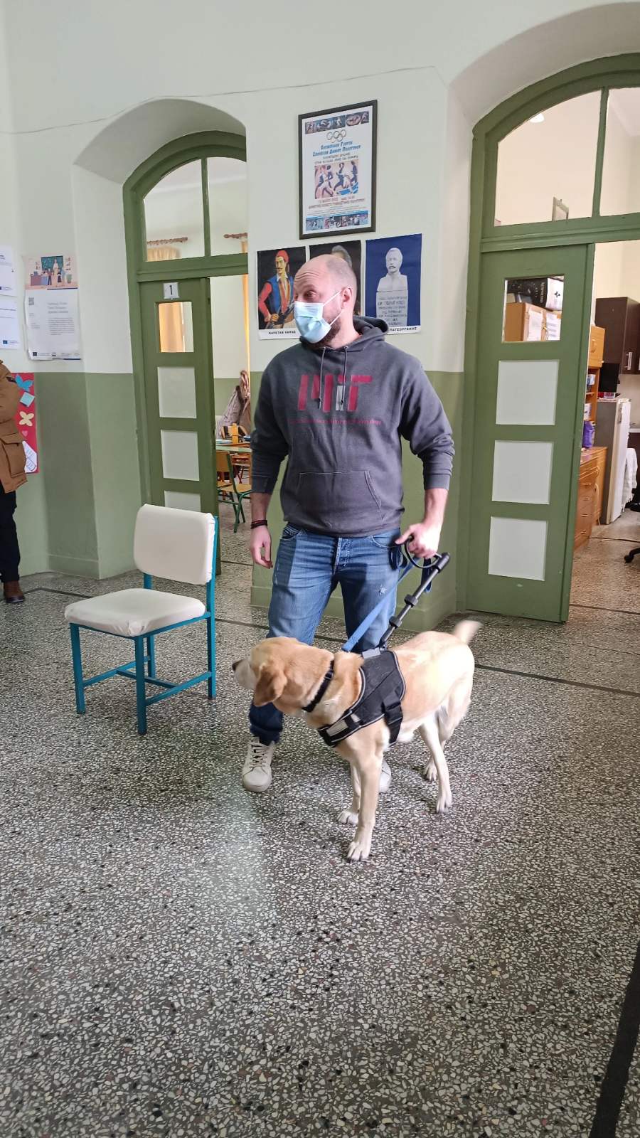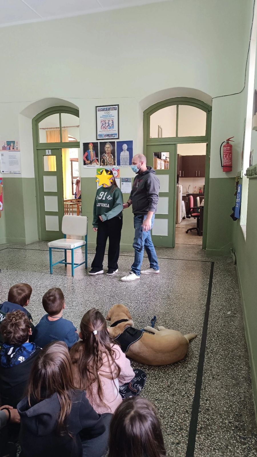 Στα πλαίσια της ενημέρωσης των μαθητών/τριών για τα άτομα με αναπηρία, την αυτοεξυπηρέτησή τους και την προσβασιμότητά τους, την Τρίτη, στις 21 Ιανουαρίου 2025, επισκέφθηκε το σχολείο μας ο κ. Θανάσης, με τον σκύλο οδηγό του, τη Φρίντα, που τον συνοδεύει και τον βοηθάει σε πολλές εκφάνσεις της ζωής του, ενώ διευκολύνει την προσβασιμότητά του και τη λειτουργικότητά του σε διάφορες περιπτώσεις. Όλοι μας ήμασταν πολύ ενθουσιασμένοι, ενημερωθήκαμε για τη βοήθεια που προσφέρουν οι σκύλοι οδηγοί τυφλών,  ενώ  ο χειριστής της Φρίντα,  κ. Θανάσης,  μας  ενημέρωσε  για  τον  σπουδαίο  ρόλο  της  Φρίντα  στη  ζωή  του,  αλλά  και  για  τον  μεταξύ  τους  συναισθηματικό  δεσμό. Ήταν  μια  εξαιρετικά  ενδιαφέρουσα  συζήτηση,  την  οποία  ευχαριστηθήκαμε  όλοι.