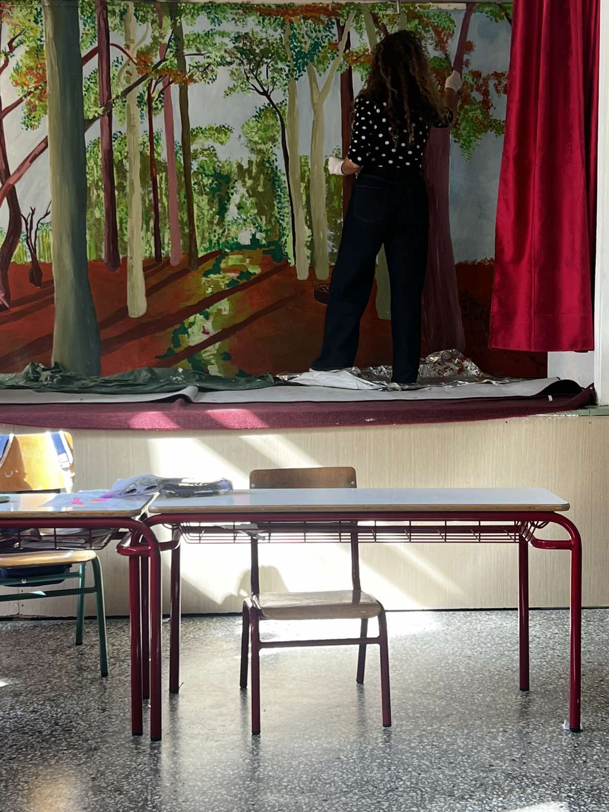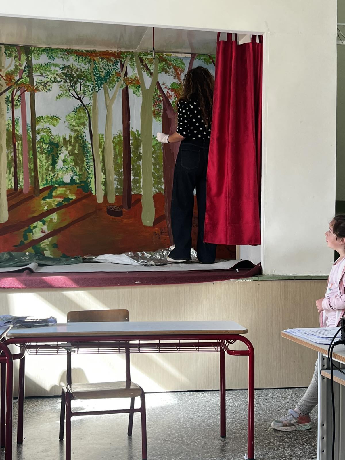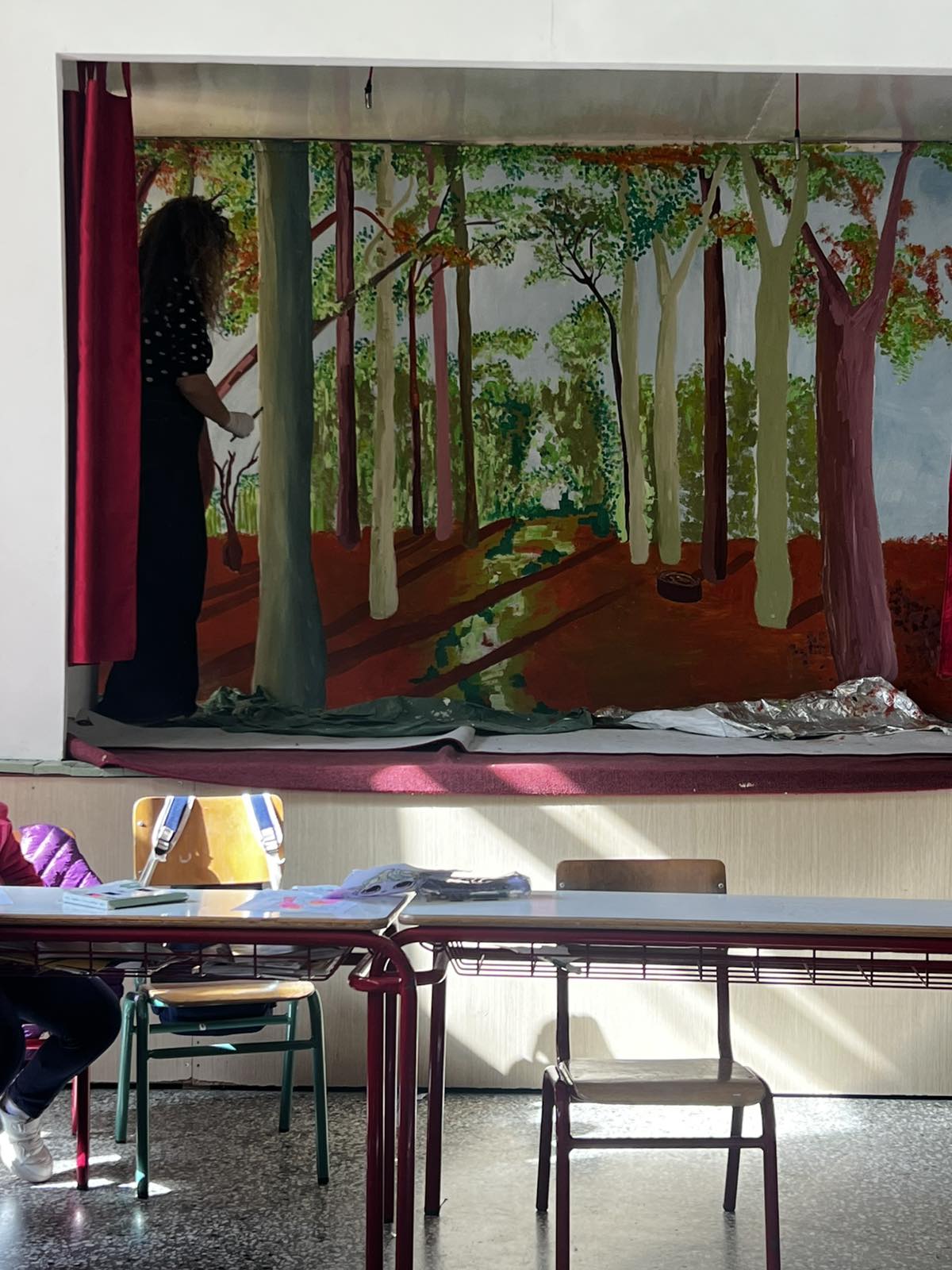 Η εκπαιδευτικός Εικαστικής Αγωγής, κ. Ελευθερία Γκέκα (ΠΕ08), ολοκλήρωσε τη διακόσμηση του σκηνικού στην αίθουσα εκδηλώσεων του Δ.Σ. Βραστάμων. Τόσο το εκπαιδευτικό προσωπικό όσο και οι μικροί/-ές μας μαθητές/-τριες την ευχαριστούμε θερμά για την προσφορά και τη βοήθειά της στο σχολείο μας. Το αποτέλεσμα ήταν καταπληκτικό και όλοι μας είμαστε απόλυτα ικανοποιημένοι και ενθουσιασμένοι. Το νέο μας σκηνικό έδωσε μια όμορφη και ευχάριστη νότα σε όλο το σχολείο και συγκεκριμένα στην αίθουσα εκδηλώσεων.
