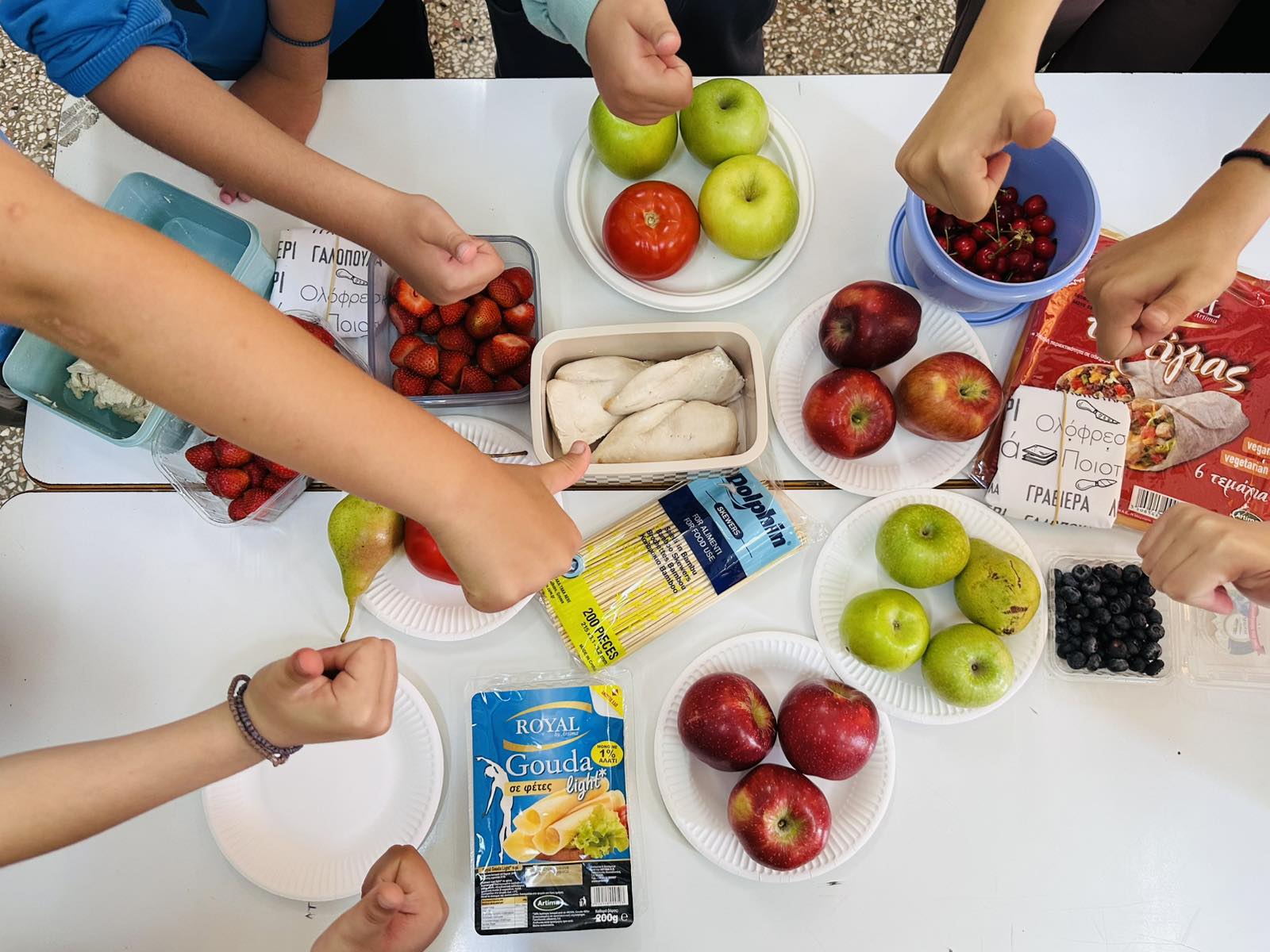 Μέσα στον Μάιο, με μεγάλη χαρά οι μαθητές και μαθήτριες της Δ’, Ε’ και Στ’ Δημοτικού, υπό την επίβλεψη της εκπαιδευτικού ΠΕ70 της Δ’ – Γ’ τάξης (συνδιδασκαλία), κα. Κοντοθεοδώρου Μαρίας, συμμετείχαν στην προετοιμασία και παρασκευή υγιεινών γευμάτων. Η δράση αυτή υλοποιήθηκε με αφορμή τη θεματική “Littlespoons (Μαθαίνω Διατροφή Α.Μ.Κ.Ε.)” στα πλαίσια του μαθήματος των Εργαστηρίων Δεξιοτήτων. Η χαρά και ο ενθουσιασμός όλων των παιδιών ήταν απερίγραπτοι, ενώ μετά την προετοιμασία τους, απόλαυσαν τα υγιεινά τους εδέσματα και οι υπόλοιποι μαθητές/τριες του σχολείου.