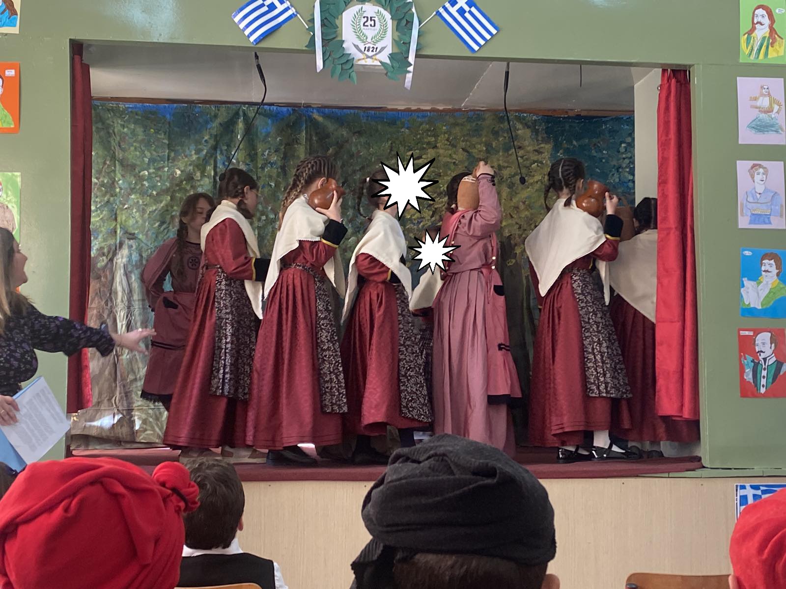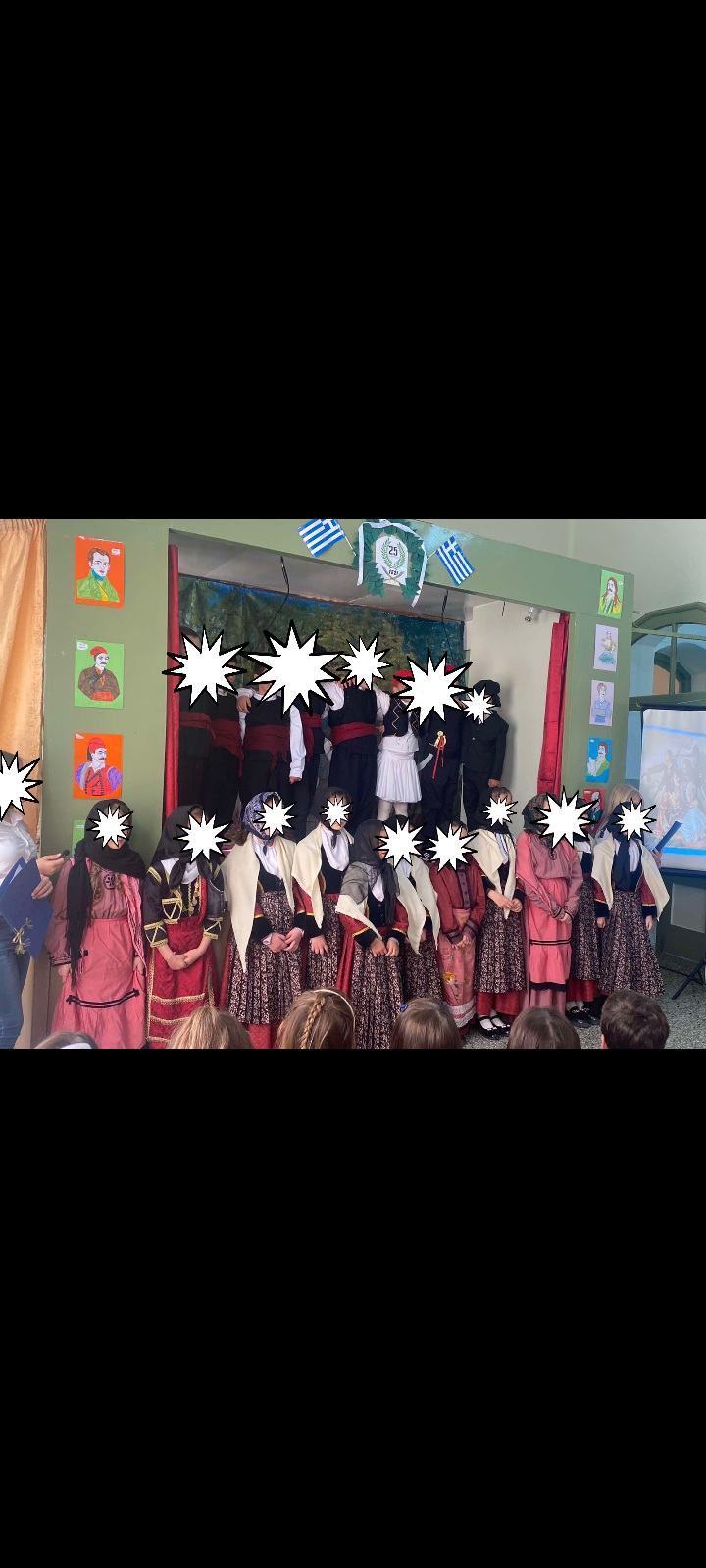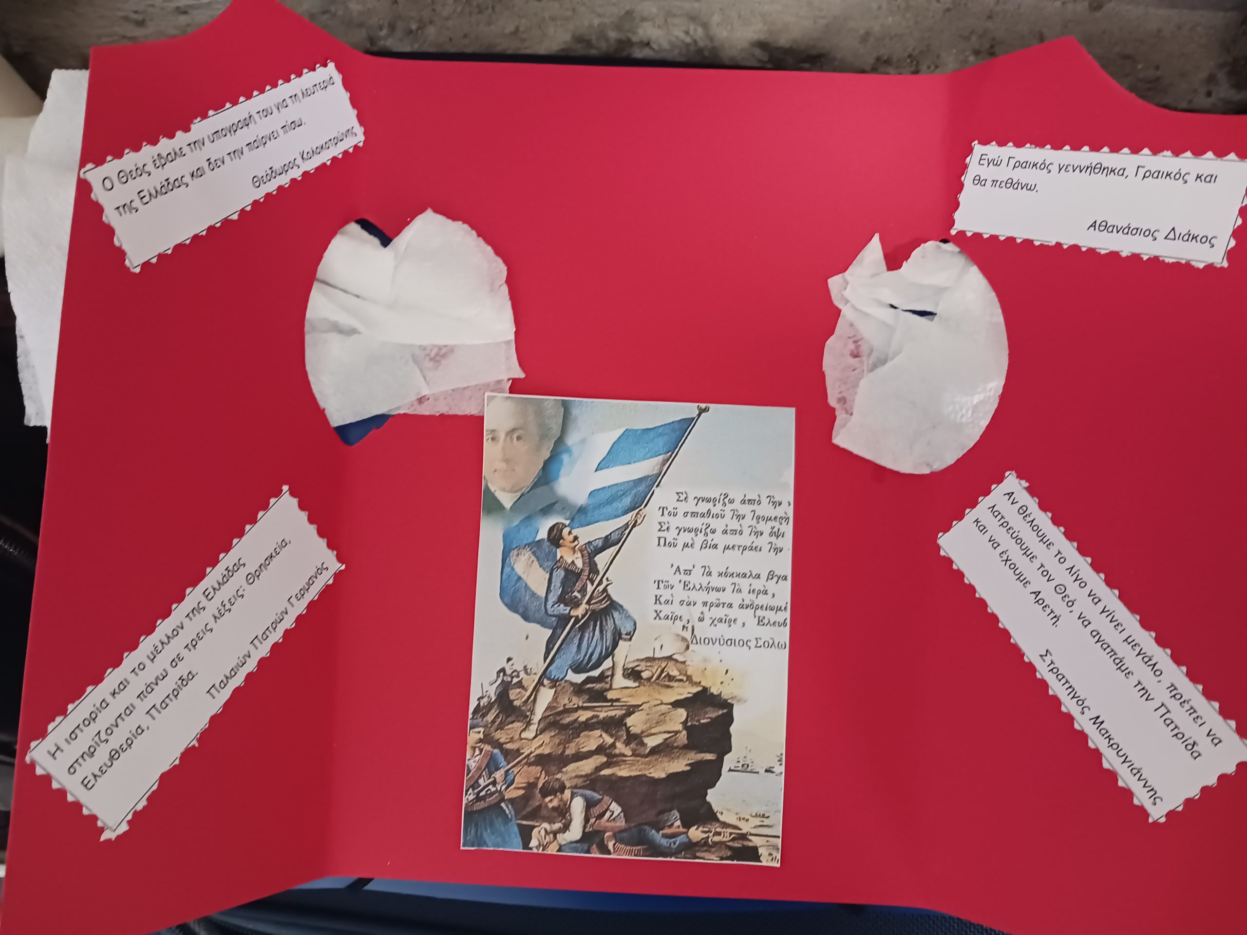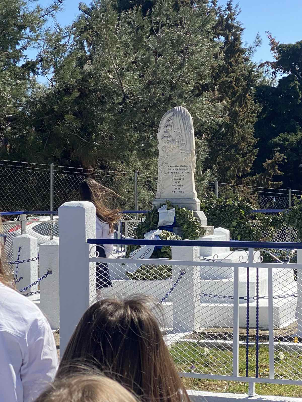 Έτσι και εμείς τιμήσαμε τη διπλή αυτή γιορτή με χειροτεχνίες και κατασκευές όλο το προηγούμενο διάστημα, καθώς και με την καθιερωμένη σχολική γιορτή, στην οποία οι μαθητες/-τριες της Γ΄ και Δ΄ τάξης μέσα από το θεατρικό και τα τραγούδια τους μας μύησαν στα ιδανικά των ηρώων που θυσιάστηκαν για να ζήσουν ελεύθεροι. Θερμά συγχαρητήρια, ωστόσο, αξίζουν και σε όλον τον μαθητικό πληθυσμό του σχολείου για την άψογη εμφάνισή τους στην παρέλαση, που πραγματοποιήθηκε ανήμερα της Εθνικής Επετείου μετά τη δοξολογία, την επιμνημόσυνη δέηση στο μνημείο των ηρώων, την κατάθεση στεφάνων και την απαγγελία του Εθνικού Ύμνου.