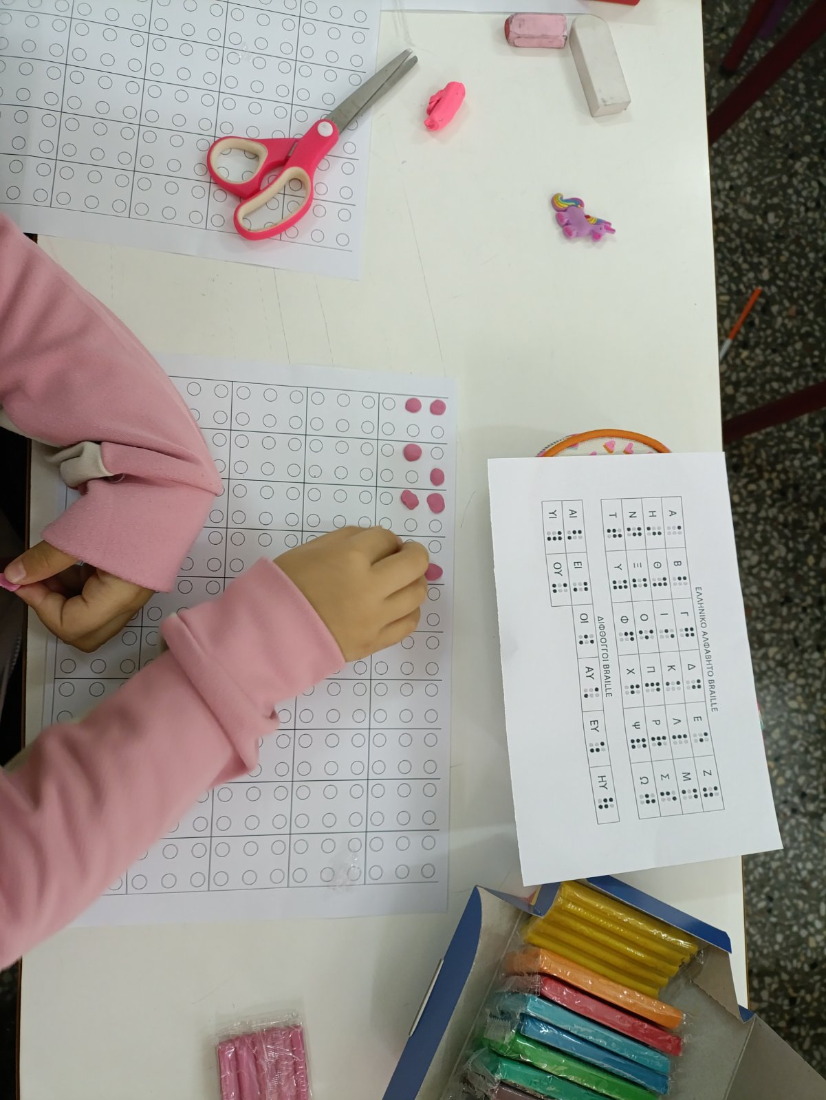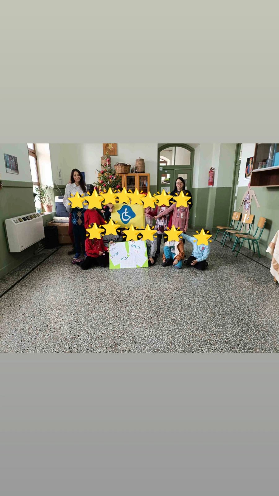 Επιπρόσθετα, οι μαθητές και μαθήτριες της Α’ και Β’ Δημοτικού συμμετείχαν σε δράσεις αφιερωμένες στην Παγκόσμια Ημέρα Ατόμων με Αναπηρία, με την κατασκευή μιας αφίσας, με τη γραφή των ονομάτων τους με το ελληνικό αλφάβητο της γραφής BRAILLE (σύστημα γραφής και ανάγνωσης των τυφλών), μέσω της πολυαισθητηριακής προσέγγισης και της χρήσης πλαστελίνης, αλλά και με τη δημιουργία χειροτεχνιών, σχετικά με τα διάφορα είδη των αναπηριών. Φυσικά, οι μαθητές και μαθήτριες όλων των τάξεων συμμετείχαν σε παιχνίδια και δράσεις αφιερωμένες στην ημέρα εκείνη, στα πλαίσια του μαθήματος της Φυσικής Αγωγής, ώστε να καλλιεργήσουν την ενσυναίσθηση και τις αξίες της ισότητας, της διαφορετικότητας, της αποδοχής και του αμοιβαίου σεβασμού. Μέσα από όλες αυτές τις δράσεις, όλοι οι μικροί και μεγάλοι μαθητές κατανόησαν πως “ΌΛΟΙ ΕΙΜΑΣΤΕ ΔΙΑΦΟΡΕΤΙΚΟΙ, ΑΛΛΑ ΟΛΟΙ ΙΣΟΙ”.